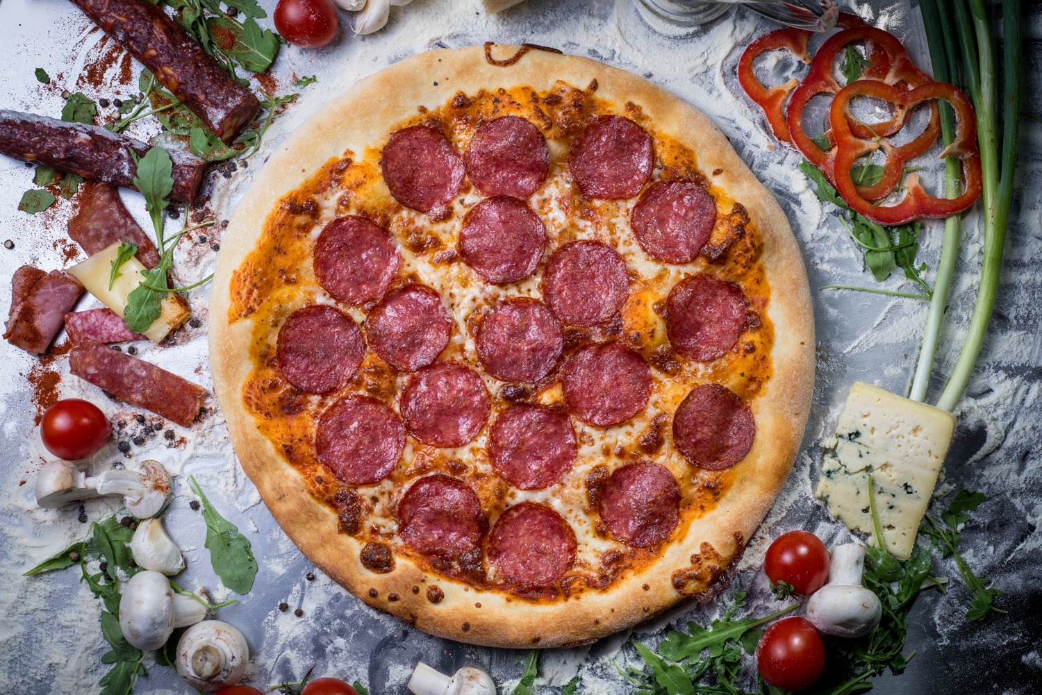 Pizza Salami (400g)Sos roșii, mozzarella, salam, condimente (oregano)